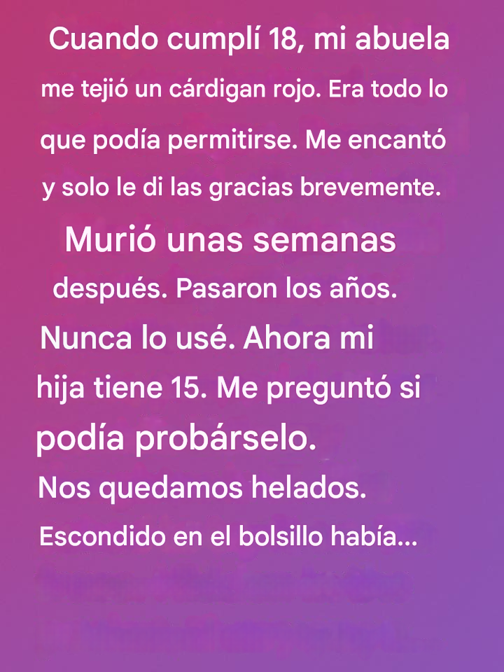 Mi hija me miró con curiosidad cuando abrí el sobre, y dentro había una nota sencilla: «Cariño, me llevó todo el invierno hacer esto. Cada puntada contiene un deseo de felicidad. Algún día entenderás el valor del amor sencillo».